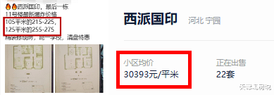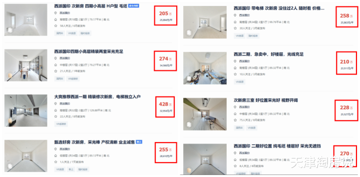 河北区西派国印高层,2万-2.1万。而该小区二手房挂牌均价3万,最便宜的一套也挂到了2万3,都比新房高出一大截。