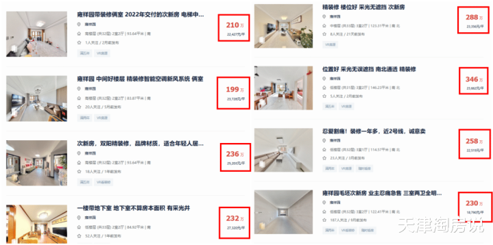雍祥园二手房均价2万2,便宜的1万8;而新房1万5。同样146平米三居,二手房报价346万,新房220多万就能拿下。