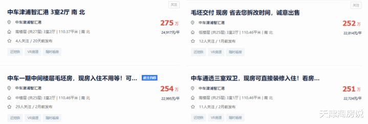 中交春映海河工抵房,精装95平米255万。折合单价不到2万7。